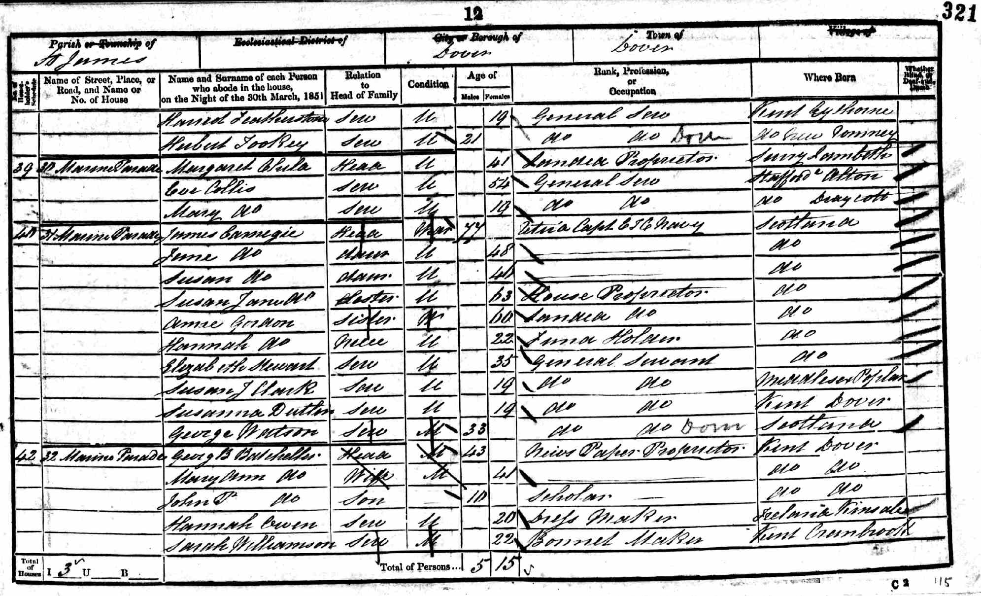 Dwelling: 31 Marine Parade Census Place: Dover, Kent, England PRO Ref: HO107 / 1632 / 321 / 12