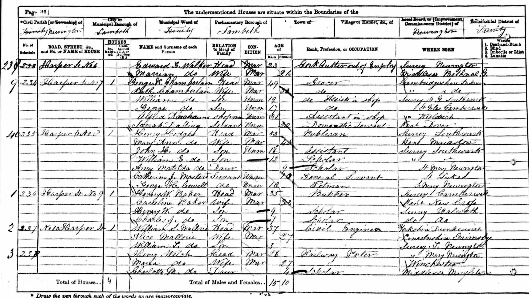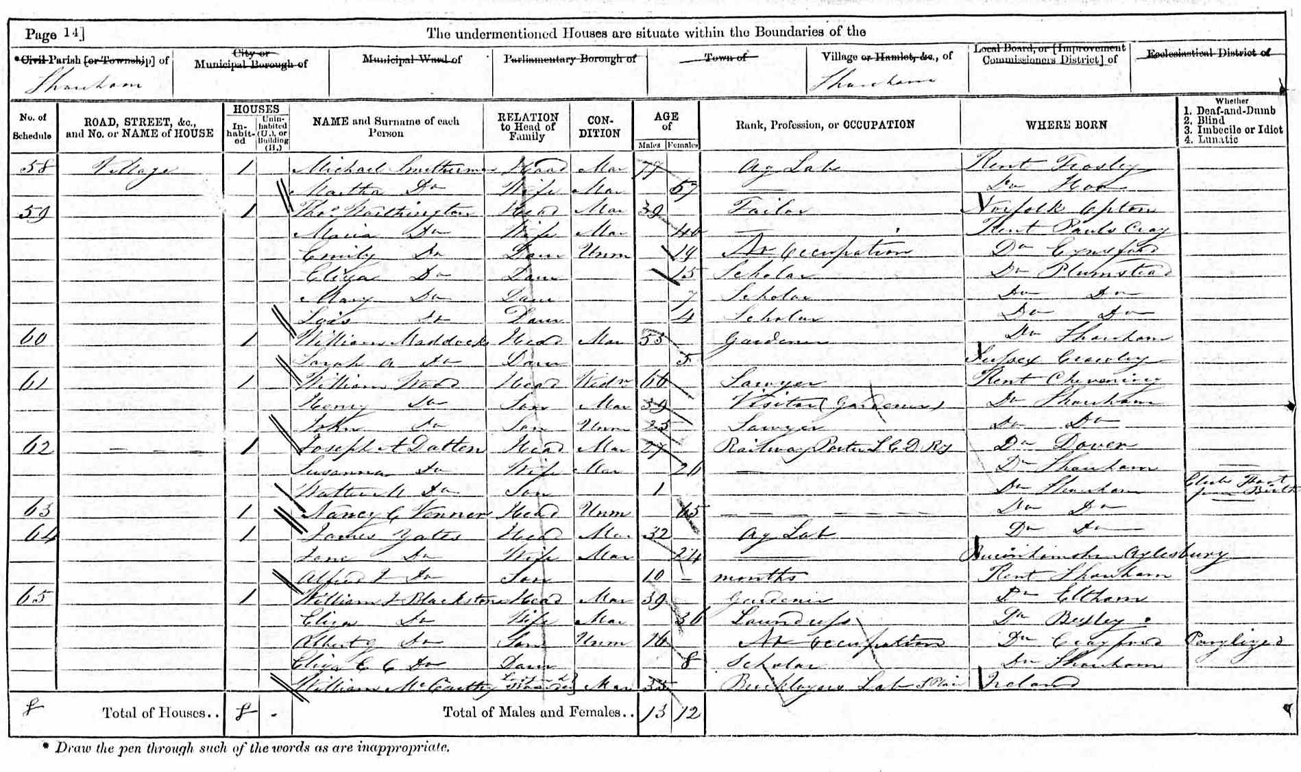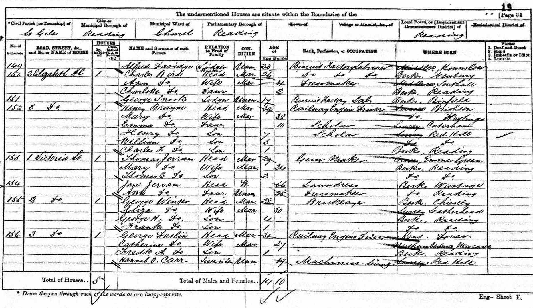 Dwelling: 3 Victoria Street Census Place: Reading, Berkshire, England PRO Ref: RG10 Piece 1284 Folio 19 Page 31