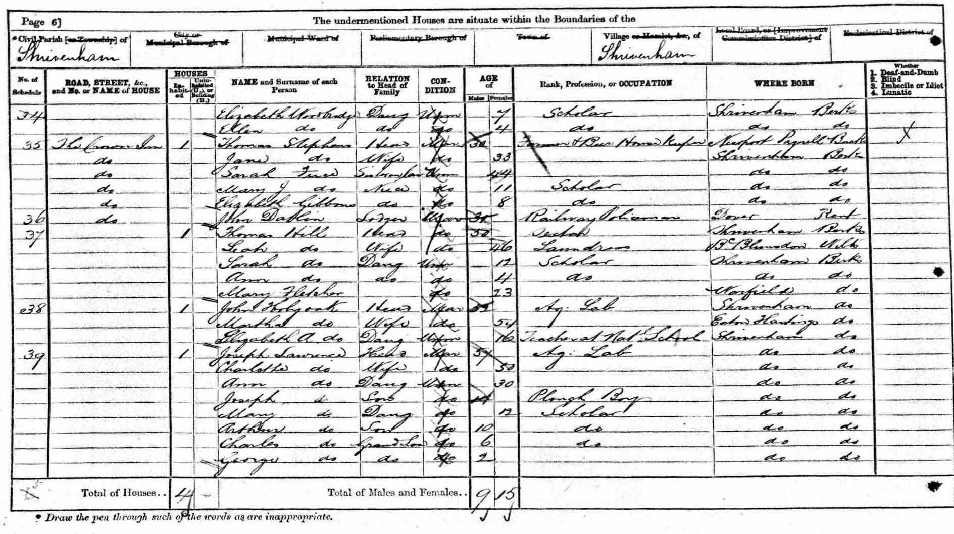 Dwelling: The Crown Inn Census Place: Shrivenham, Buckinghamshire, England PRO Ref: RG10 Piece 1257 Folio 27 Page 6