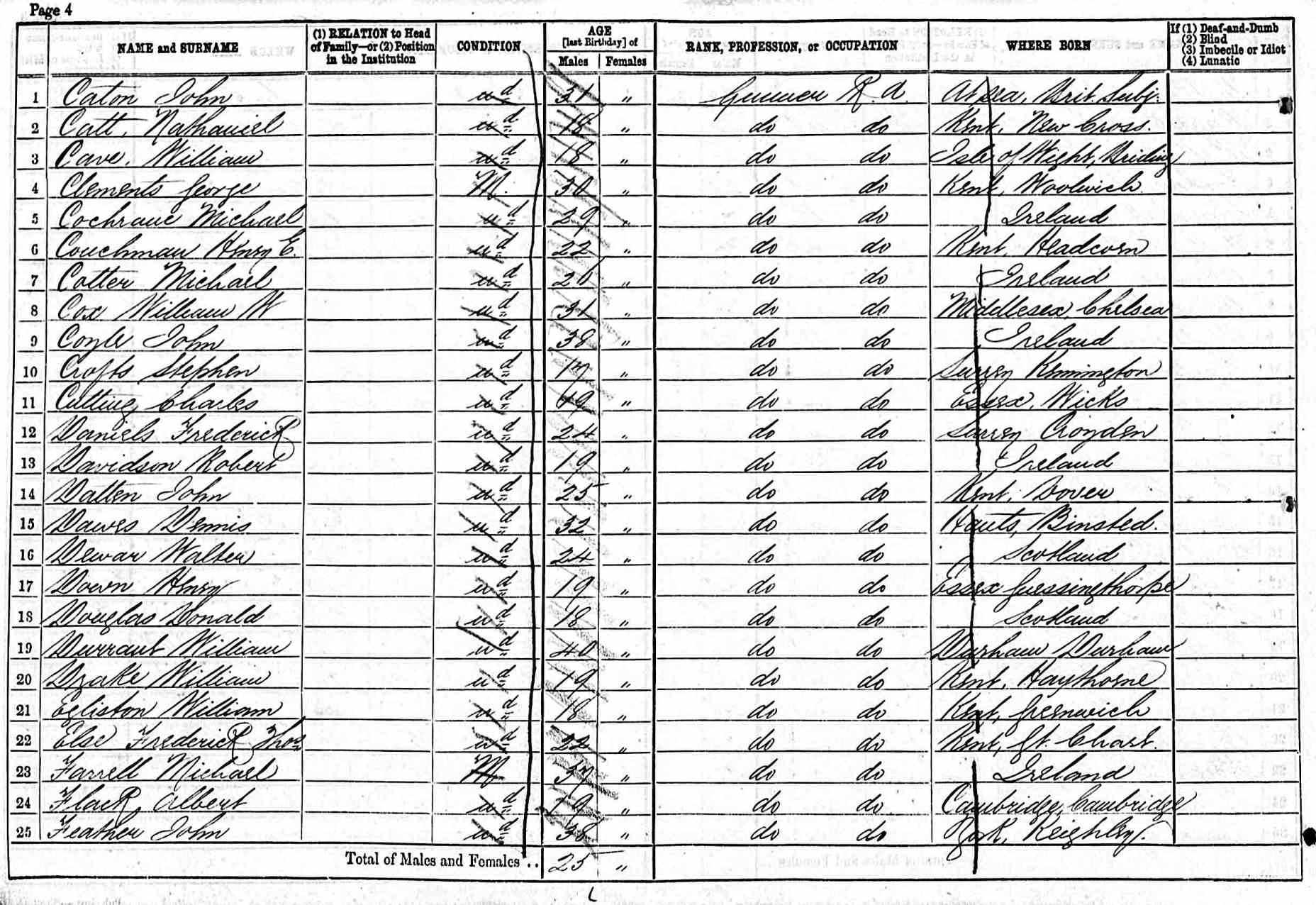 Dwelling: Dover Barracks Census Place: Dover, Kent, England PRO Ref: RG10 Piece 1008 Folio 95 Page 4