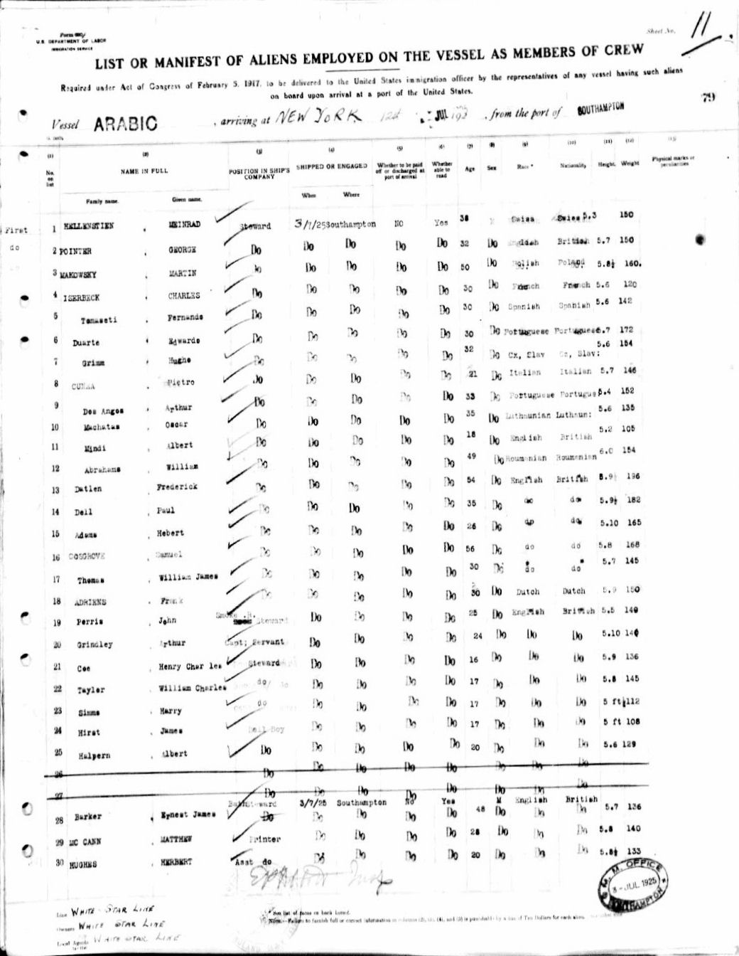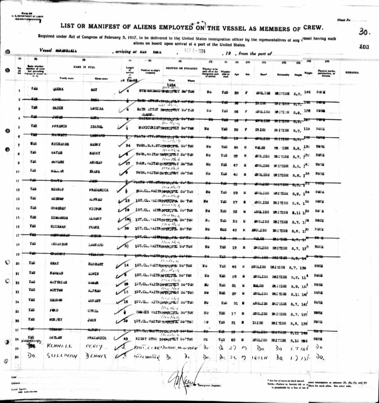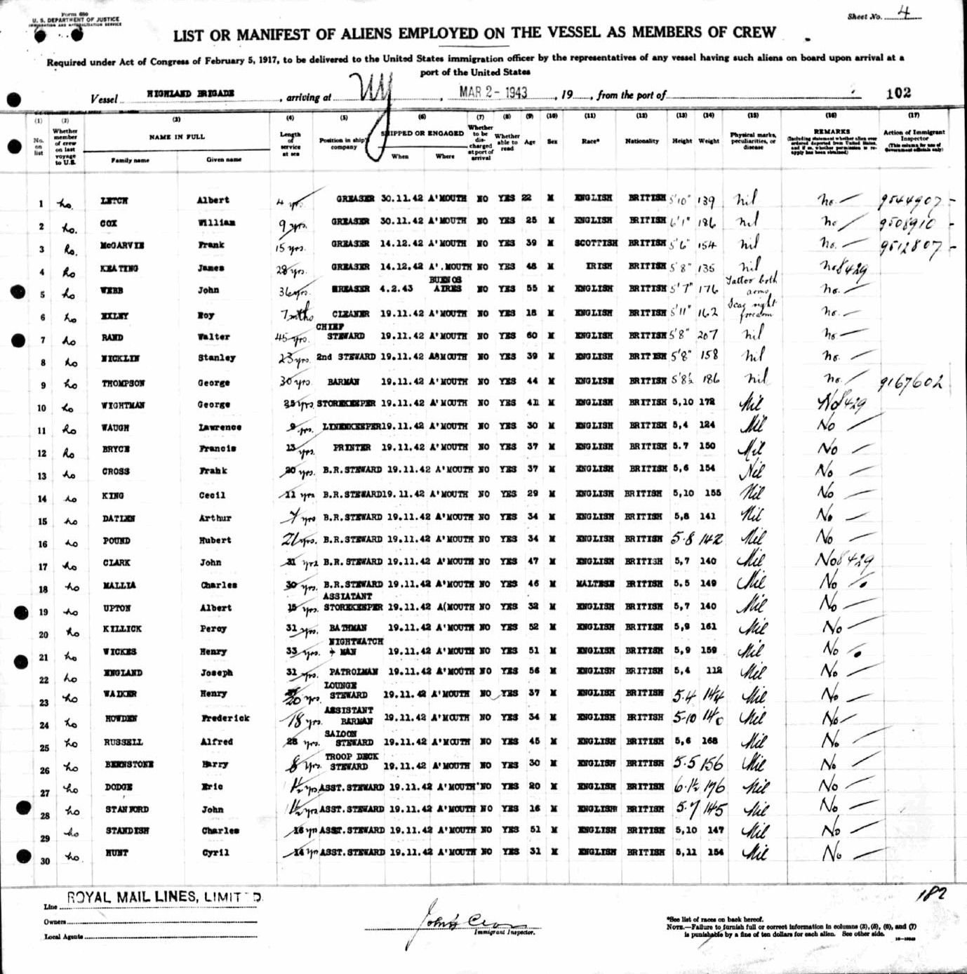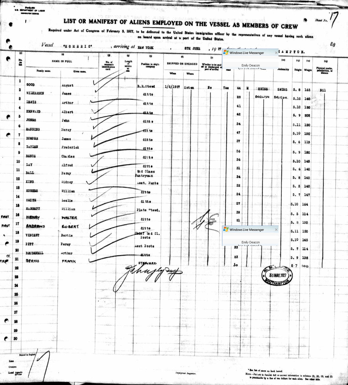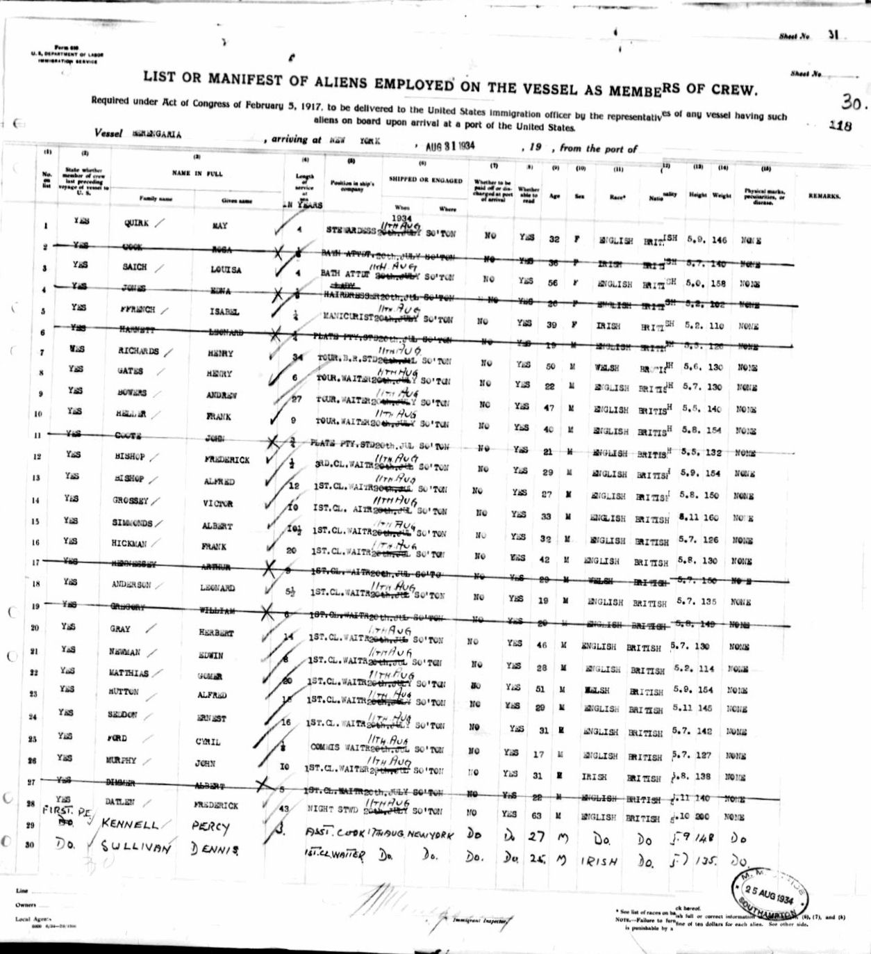 Notes: Unknown - Need to recheck this entry for correct dates and ship details.