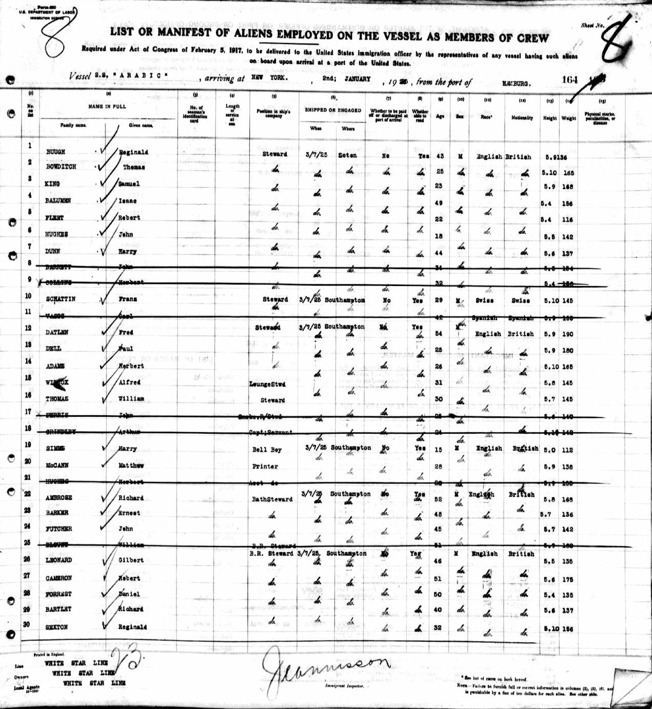 Notes: Arthur was the son of Frederick / Robert / Robert / Johannes, he was 5.8ft in height and weighed 141 lbs